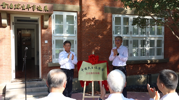 高友東與上海理工大學(xué)黨委書記王凌宇共同為雷潔瓊生平事跡展“民進會史教育基地”揭牌。
